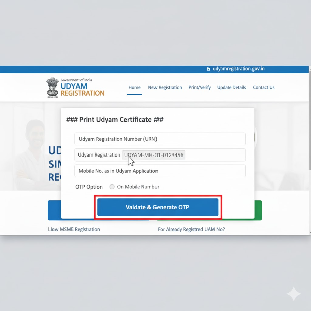 - Your registered mobile number (as per your Udyam application).