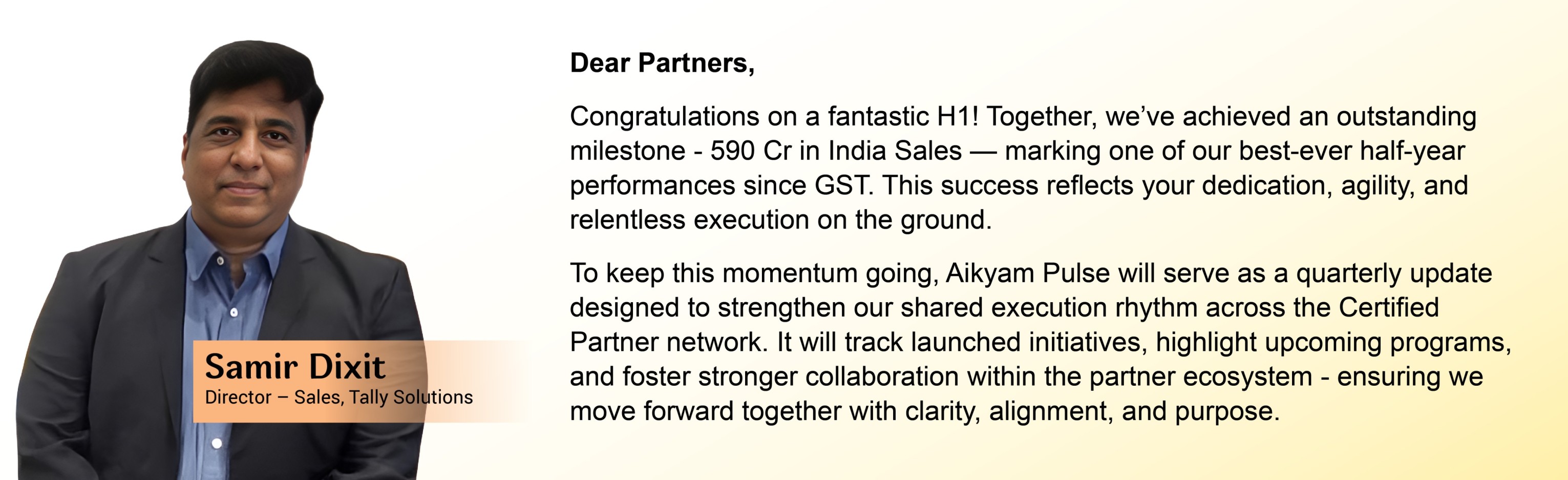 Launched on 15th August 2024, the Customer Management Practices (CMP) initiative has been instrumental in helping partners drive structured and outcome-oriented customer engagement, leading to stronger adoption, improved retention, and increased recurring revenue. So far, the initiative has reached 1.27 million customers through 73% of CMP partners, achieved a 13% renewal rate among 95,000 P4 and P2.2 customers, and witnessed 32% of CB (5.56 lakh) adopting at least one Tally Connected Service (TCS) feature.