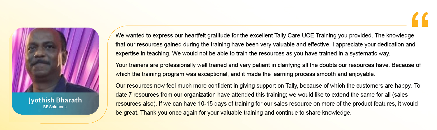 Alongside collaboration, capability-building continues to be a core focus for us. Nearly three years ago, we introduced the UCE (Unified Care Experience) Trainings under TallyCare. These programs are designed to equip your teams with product knowledge and enhance their expertise in managing customer implementations and support services effectively, tailored to their respective experience levels.