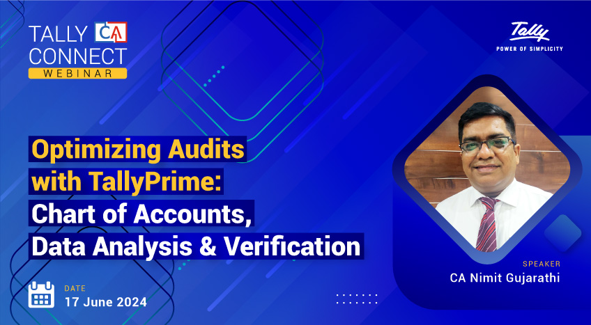 Date Jul 17 2024 Expired! Time 3:00 pm - 4:30 pm Optimizing Audits with TallyPrime: Chart of Accounts, Data Analysis & Verification Speaker : CA Nimit Gujarathi Description -Verification of Chart of Accounts. – Analytical Procedures for audit – Utilize TallyPrime for data analysis. – Use of effective data sampling techniques. – Streamline voucher verification processes Share this event + Add to Google Calendar + iCal / Outlook export