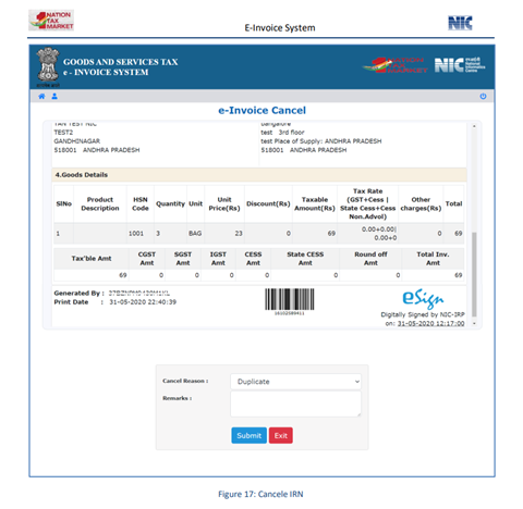 - If e-Invoice is cancelled, the same invoice number cannot be used again to generate another IRN