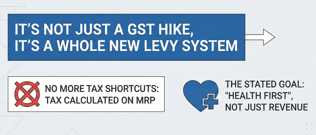 - After: Additional Excise Duty + Health & National Security Cess (on top of GST)
