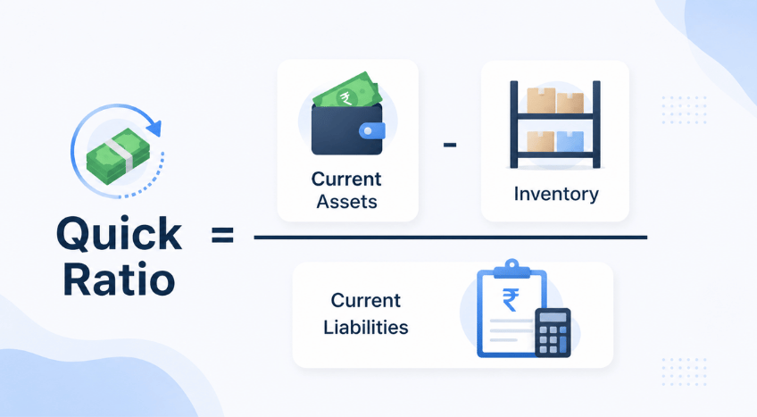A garment trader with ₹18 lakh in inventory, ₹4 lakh in receivables, and ₹16 lakh in creditor dues has a Current Ratio of 1.37 which looks acceptable. But the Quick Ratio is 0.25, which means if his buyers stop paying or his inventory doesn't move, he cannot cover even a quarter of his dues.