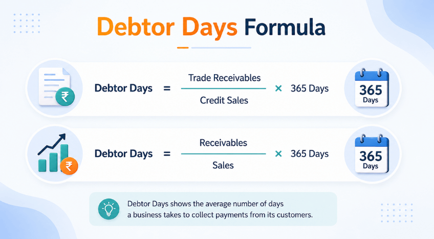 Debtor Days = (Total Debtors ÷ Annual Credit Sales) × 365