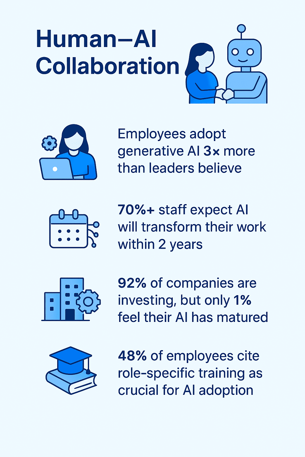 Introducing a new set of skills and careful thought into workflow design is key to building a great partnership. Digital literacy, critical thinking, and creative problem-solving are top skills for this new era.