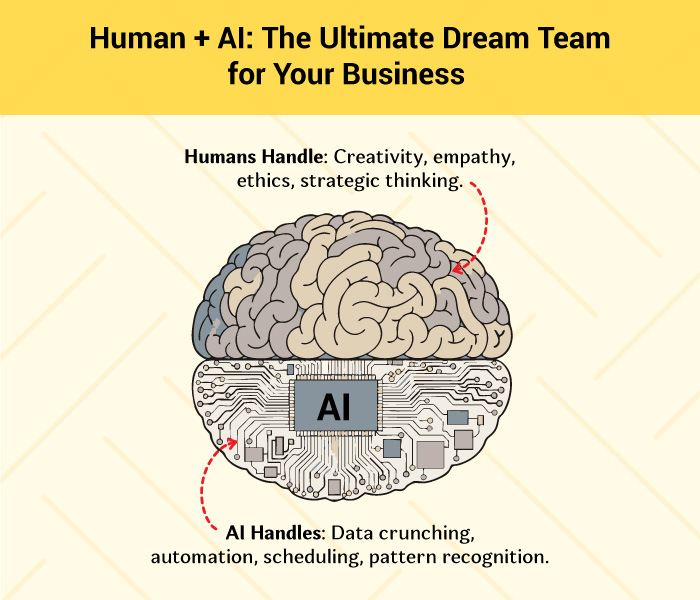 The future is not about man or machine. It is about a man with a machine. Think of AI as the ultimate sous chef in your business kitchen. It can chop the vegetables and manage the inventory at lightning speed, freeing you, the master chef, to create the award-winning recipes. Let’s explore how this dream team is already changing the game and how you can get in on the action.