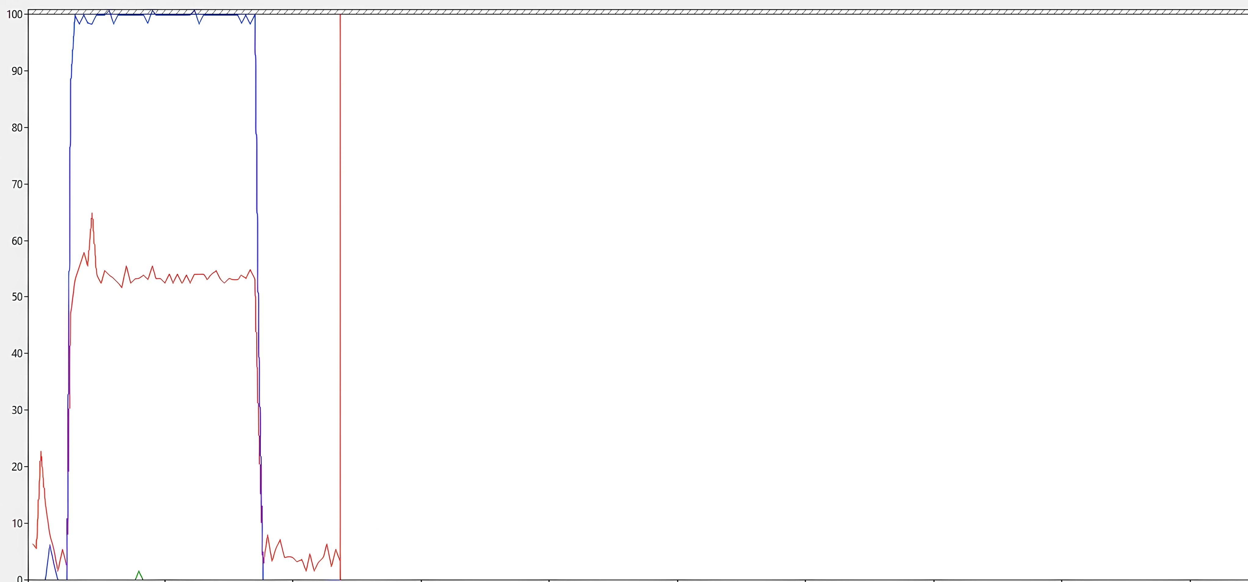 Instance-1 performed a read operation, taking 42 seconds and utilizing 100% of a single logical processor. This indicates that the application is single-threaded, as it fully consumed one CPU to process the data.