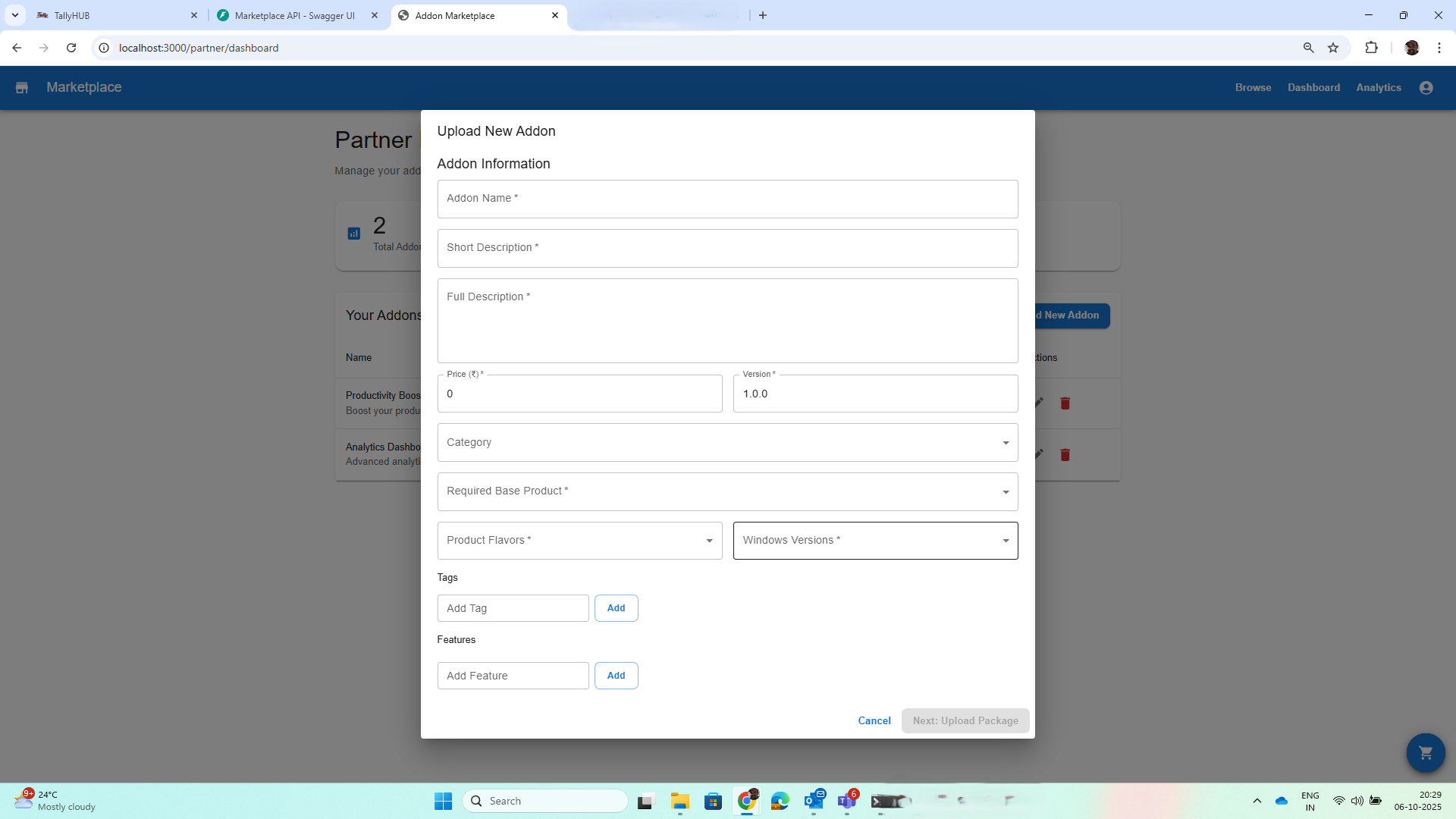 WHEN a partner uploads an addon THEN the system SHALL validate the addon package format and metadata
